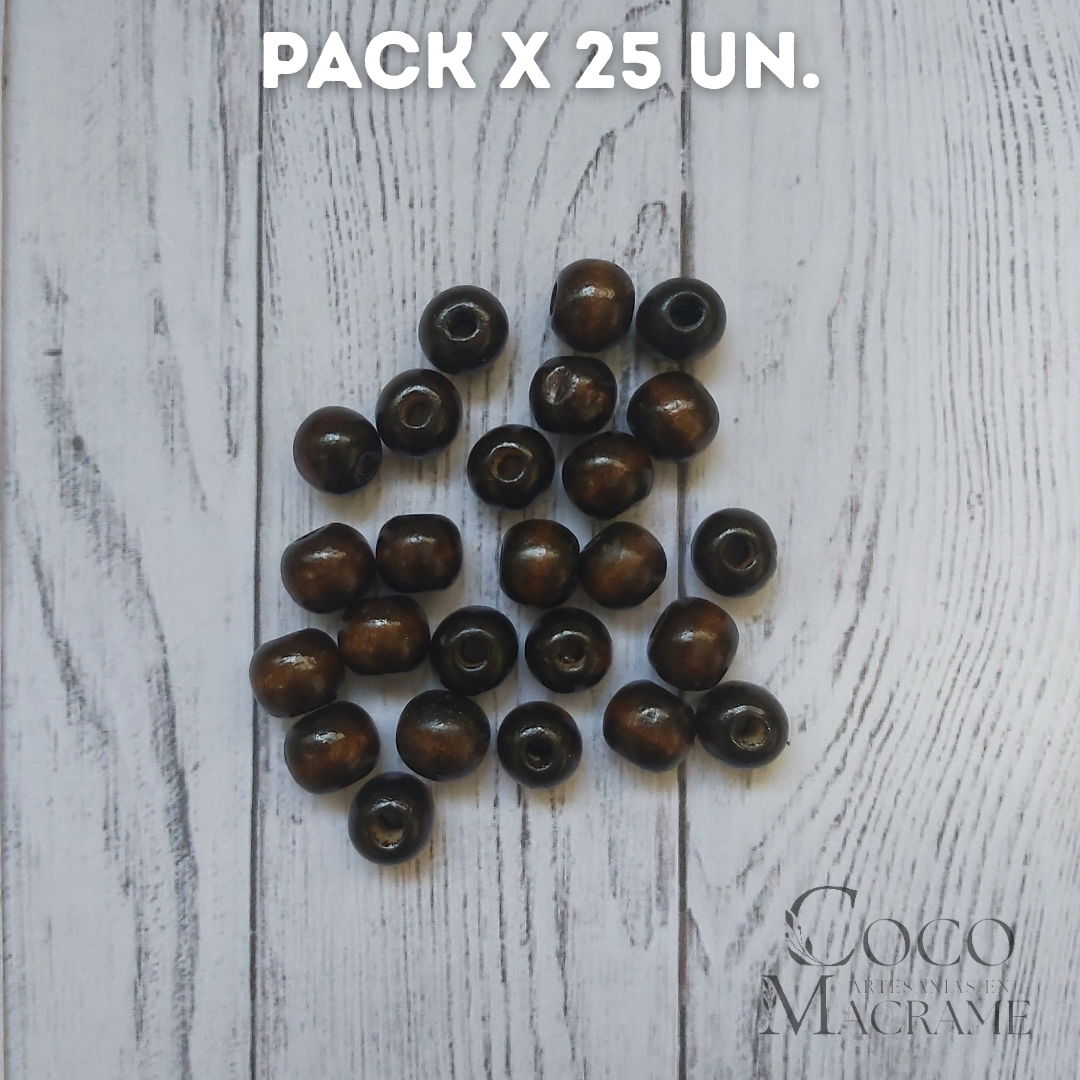 Cuentas de madera marrón oscuro 12mm x 25 un.