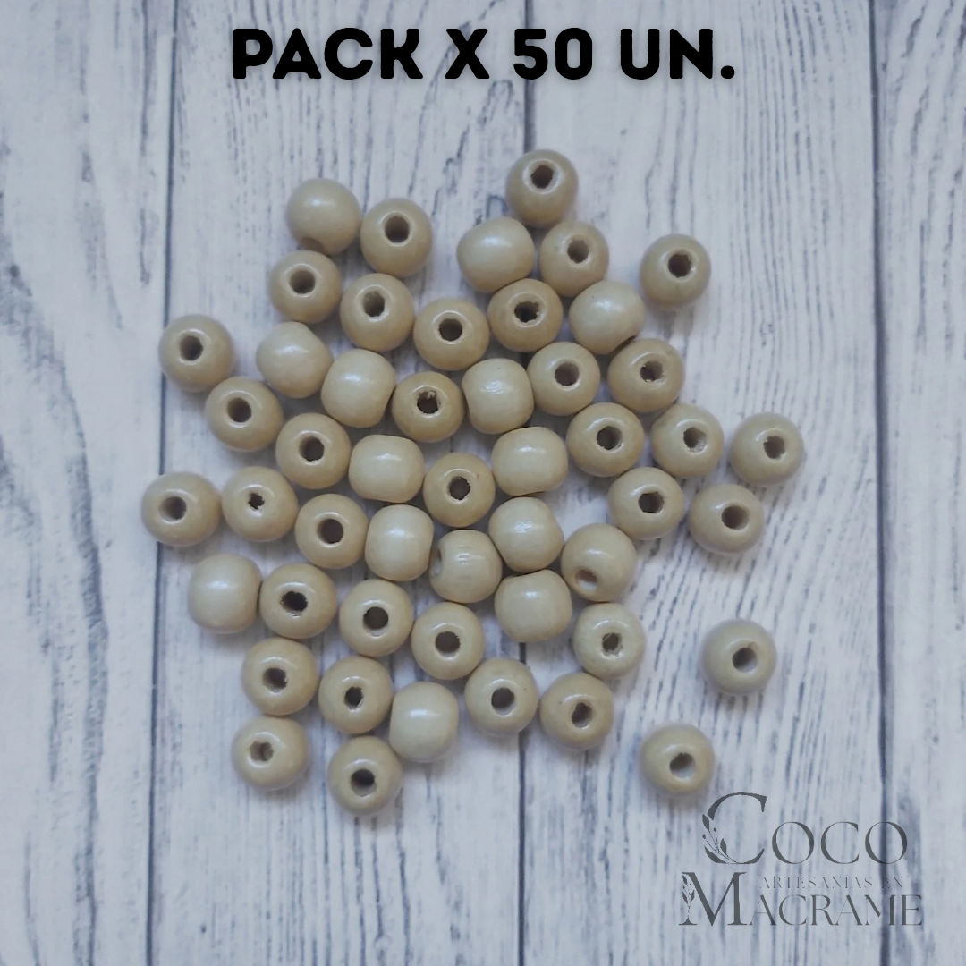 Cuentas de madera natural 12mm x 50 un.