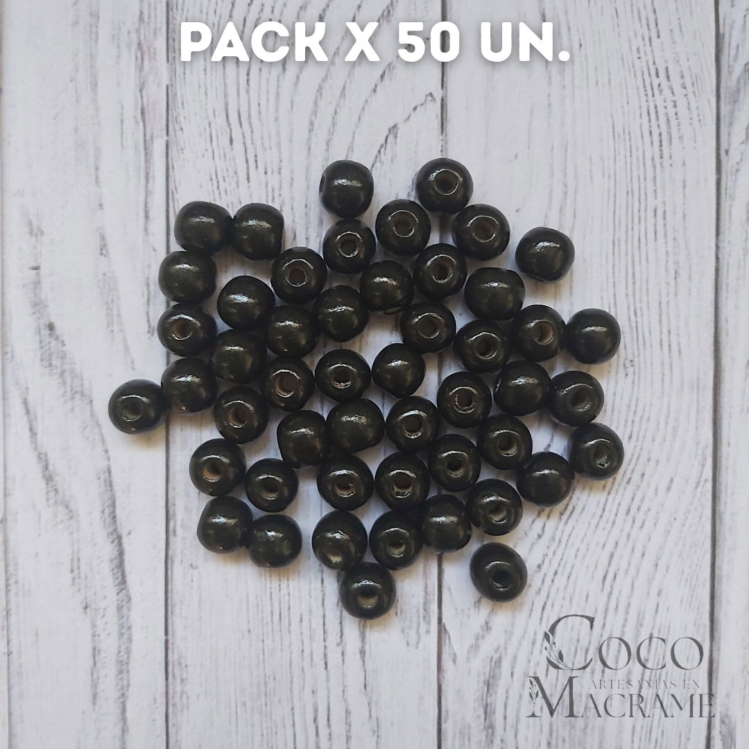 Cuentas de madera negro 12mm x 50 un.