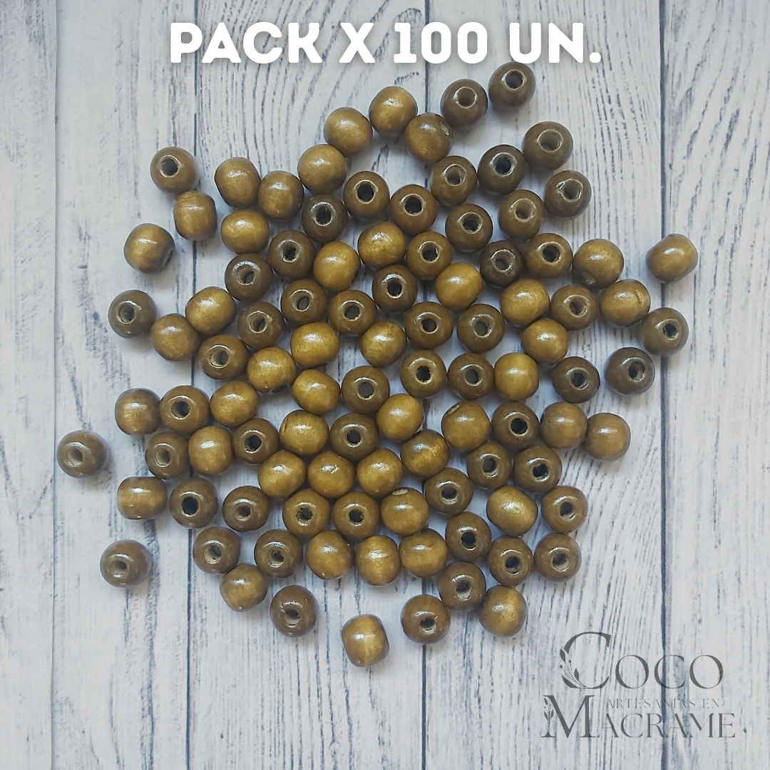 Cuentas de madera marrón claro 12mm x 100 un.