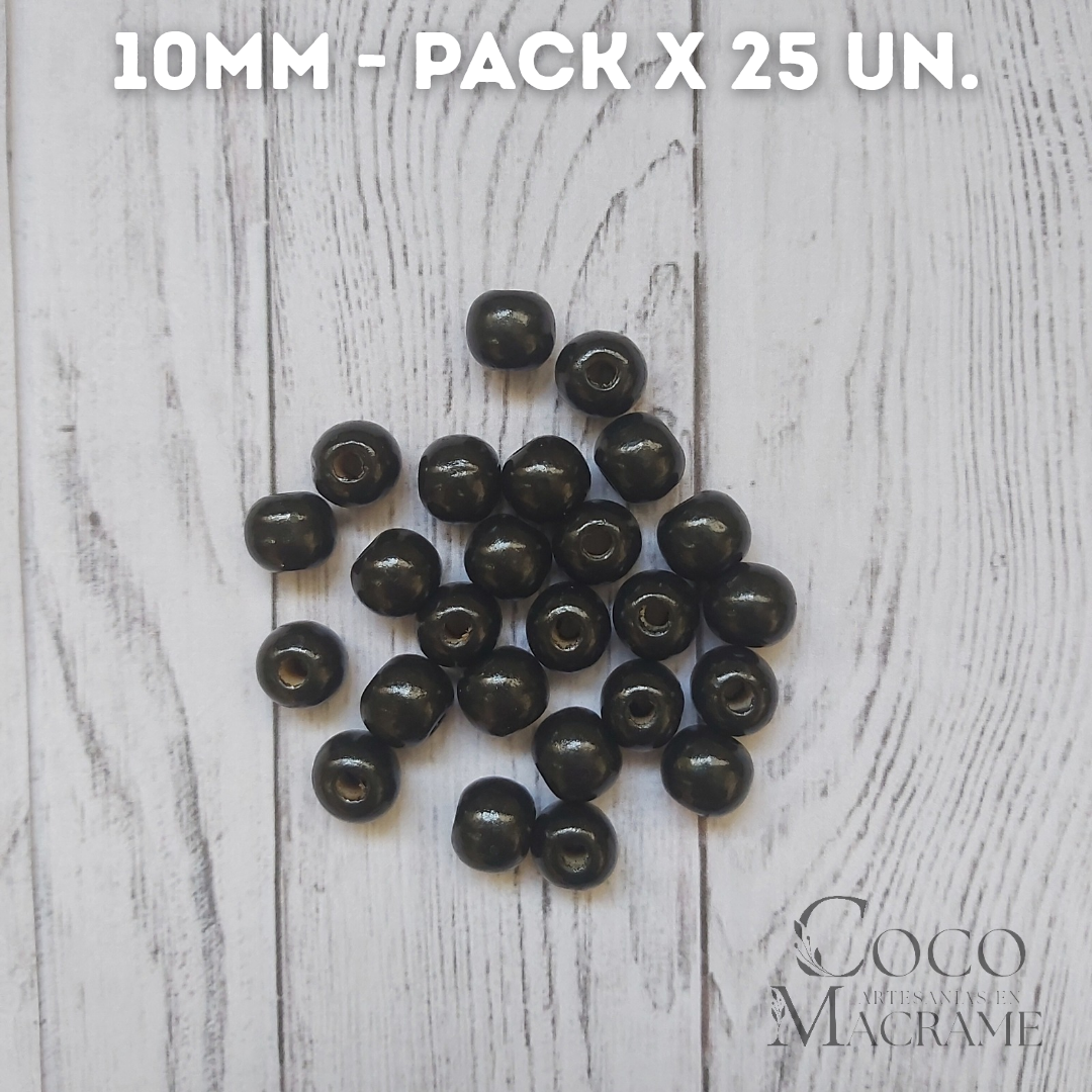 Cuentas de madera negro 10mm x 25 un.