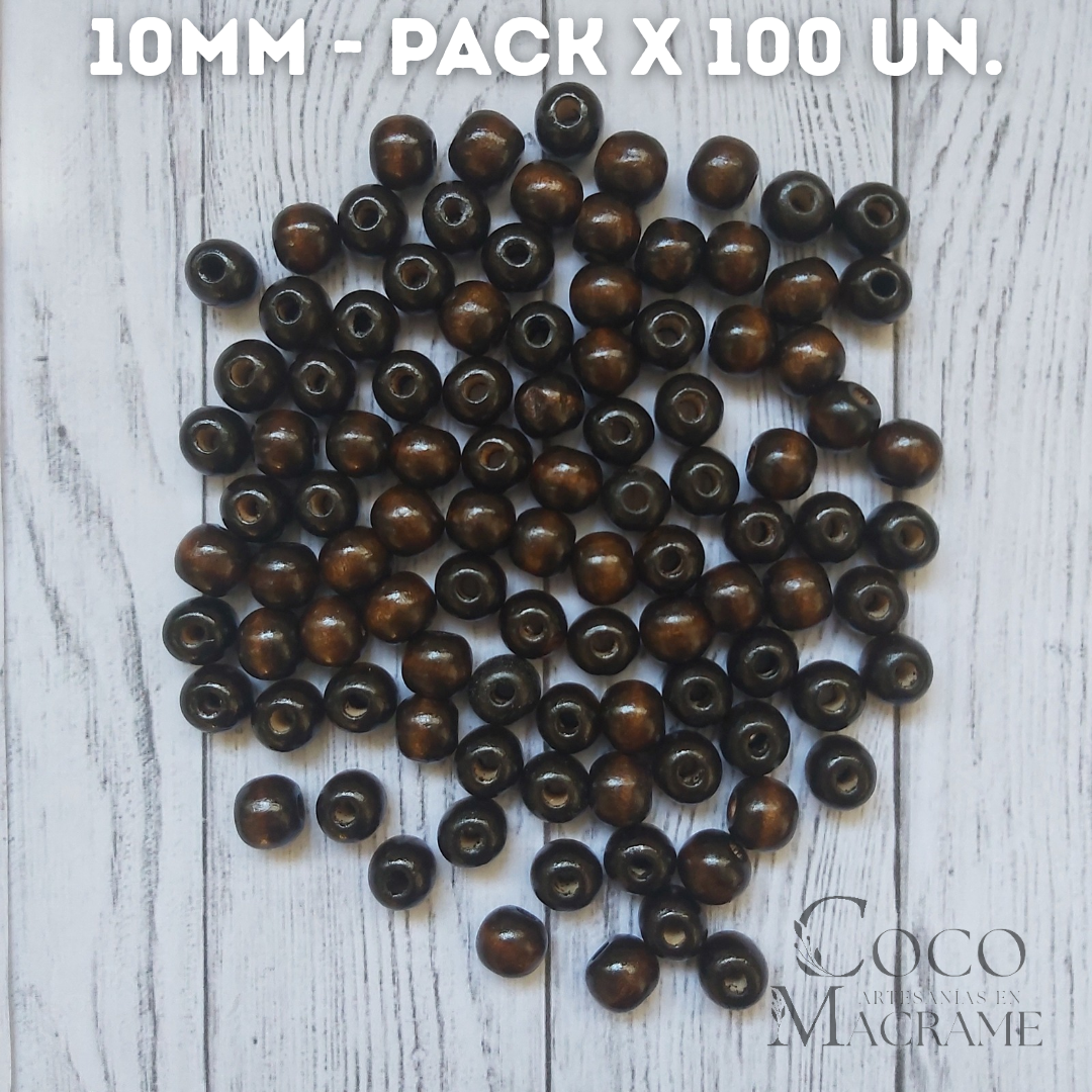 Cuentas de madera marrón oscuro 10mm x 100 un.