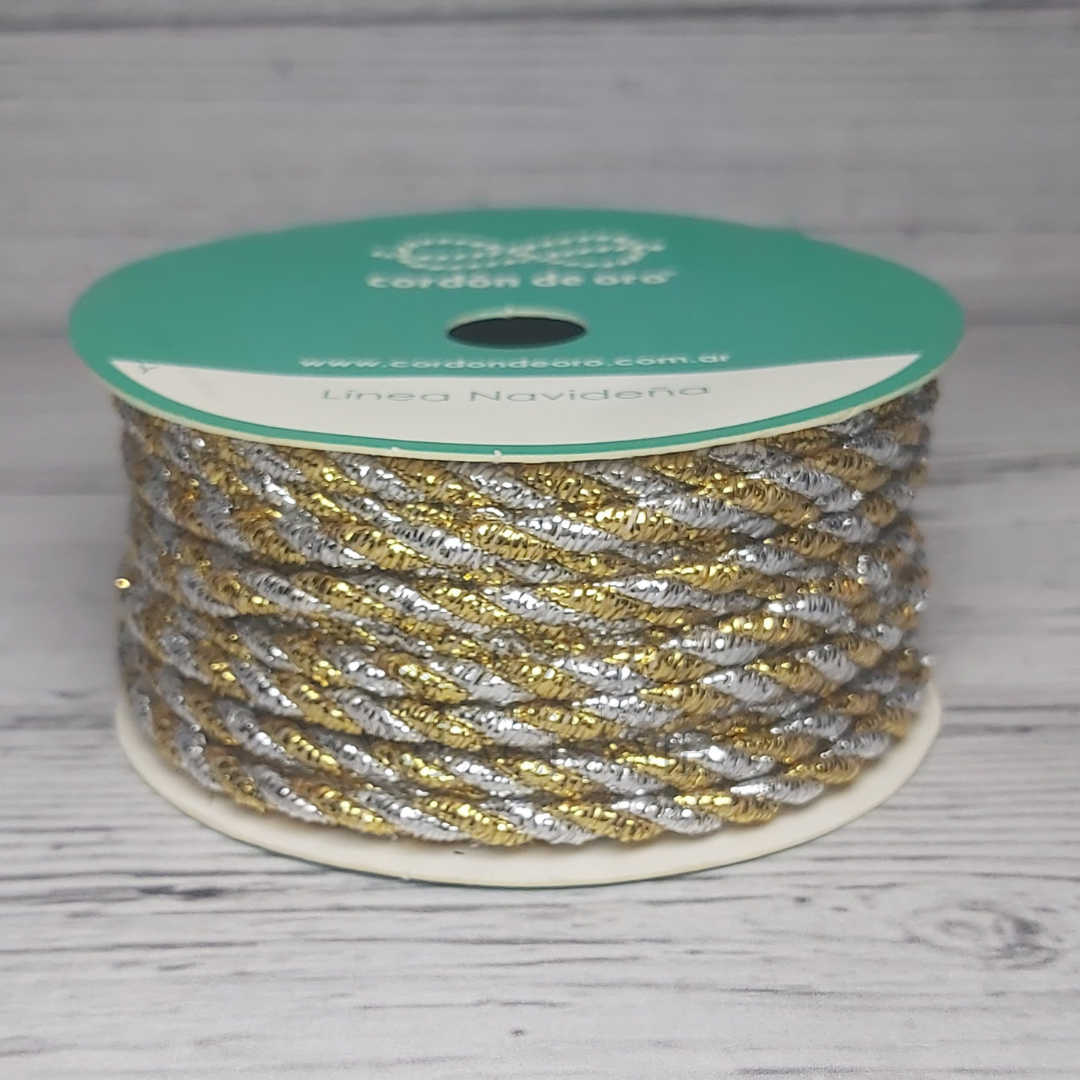 Cordón navideño bicolor 3mm plateado x 10 mts