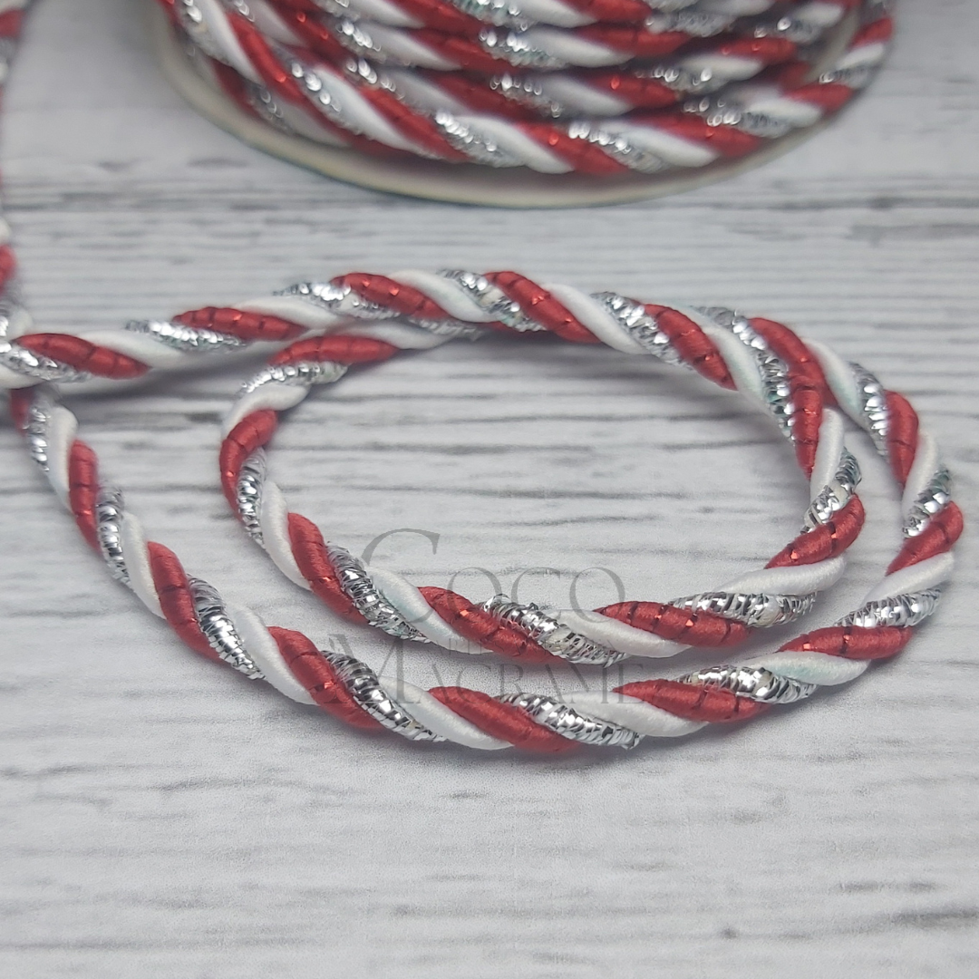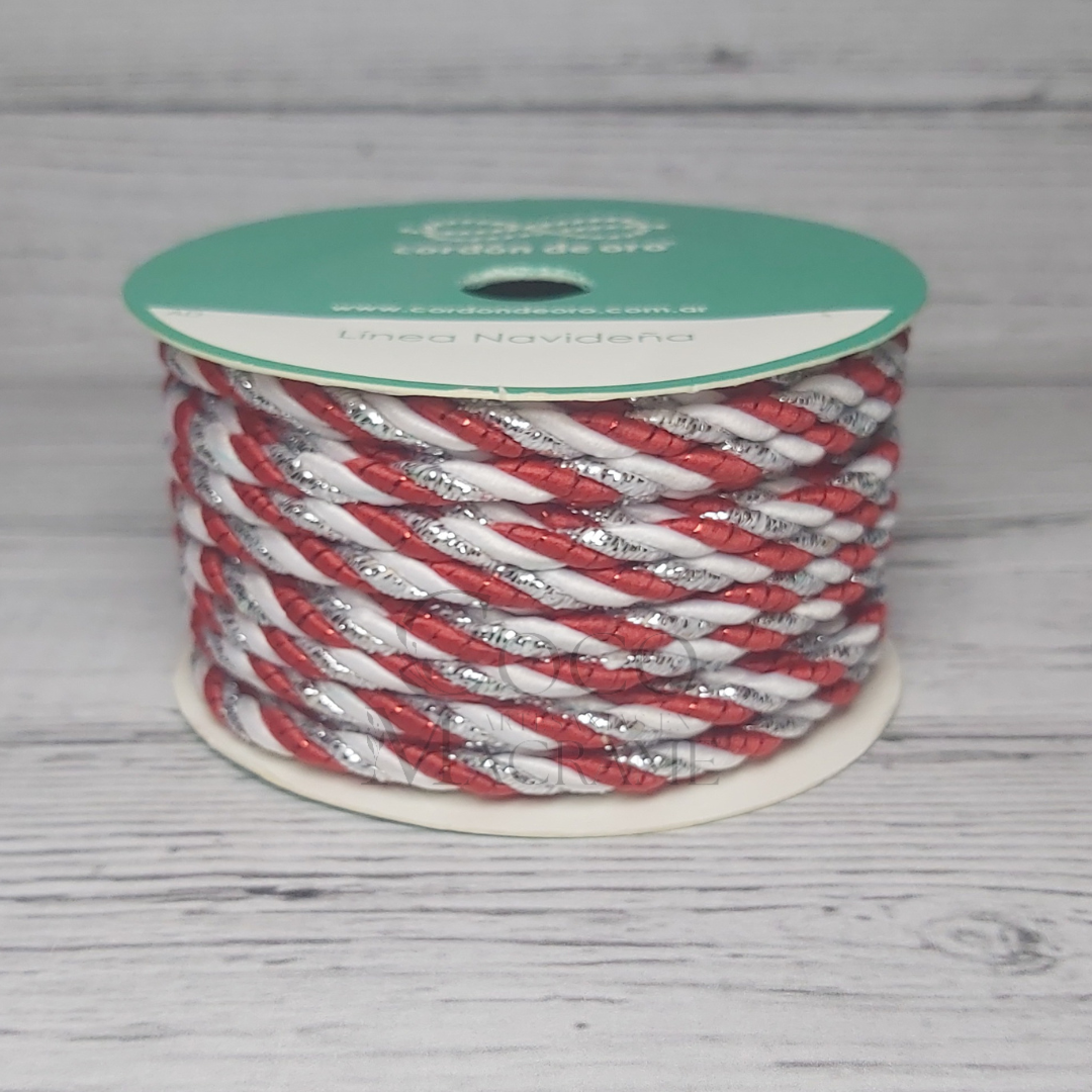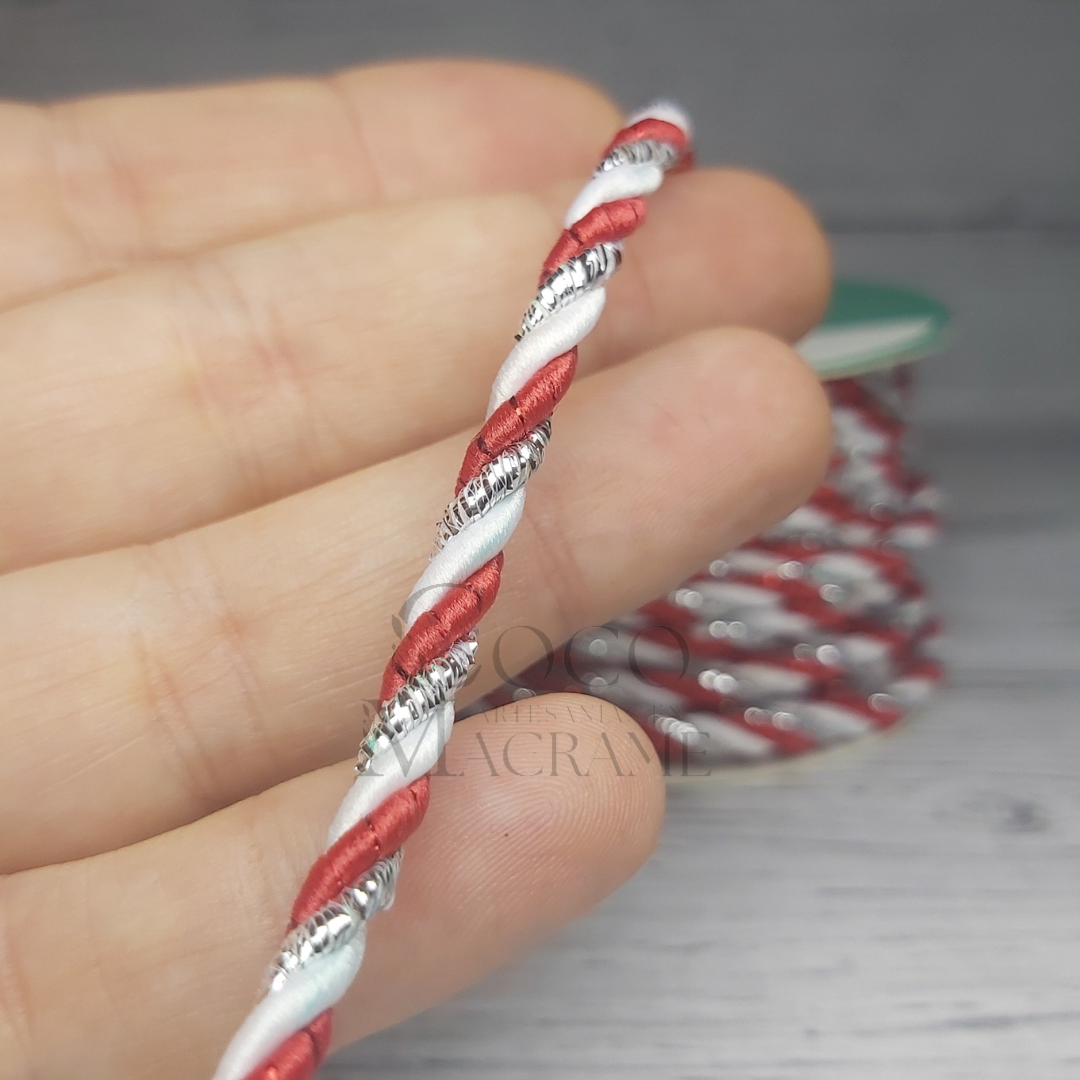 Cordon Trinidad Lurex, rojo, Plata y blanco