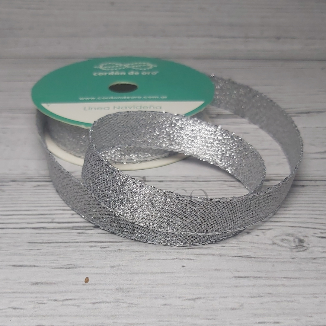 Cinta navideña Lurex plateado 15mm x 10 mts