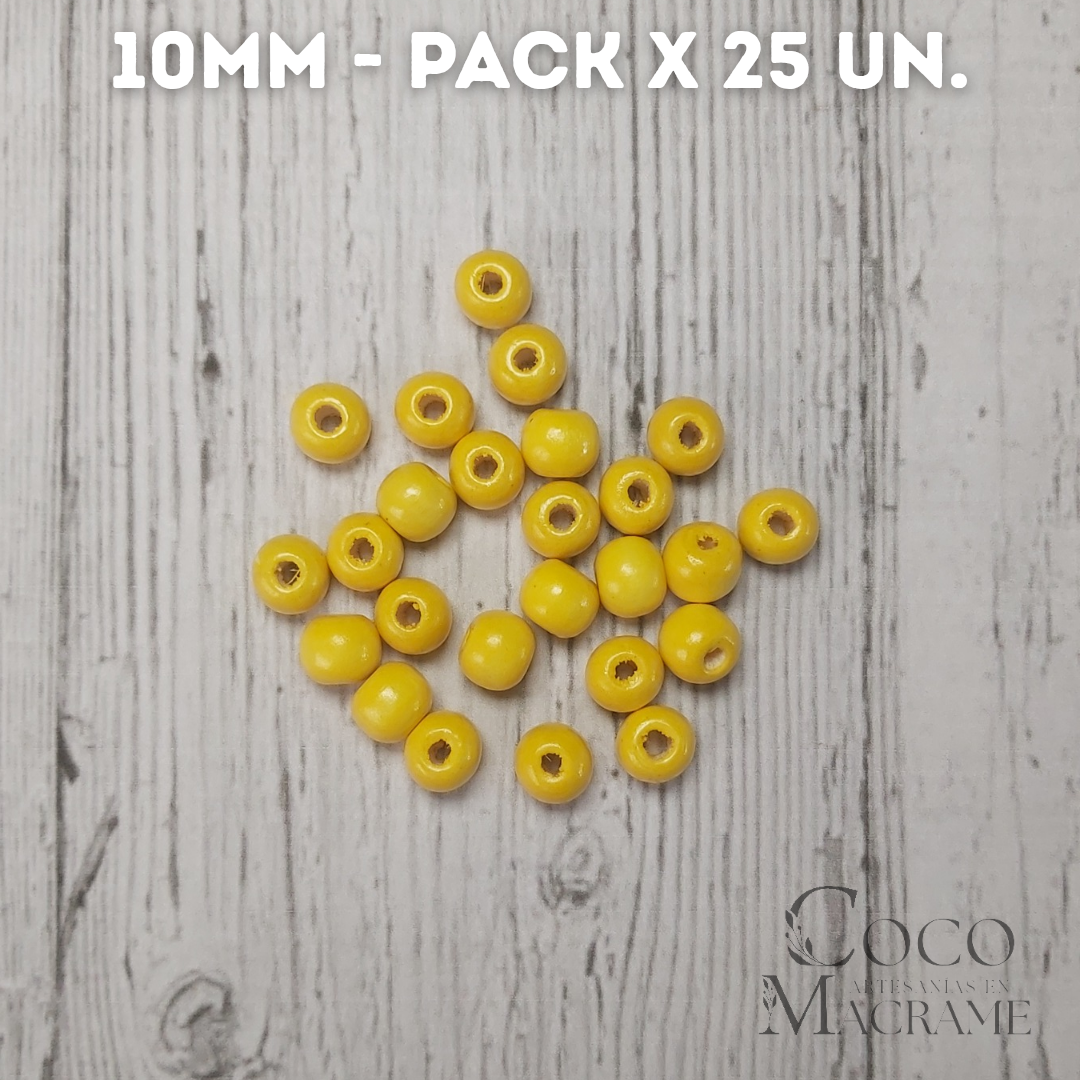 Cuentas de madera amarillo 10mm x 25 un.