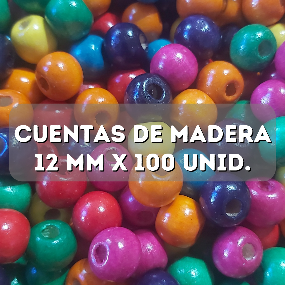 Cuentas de madera multicolor 12mm x 100 un.