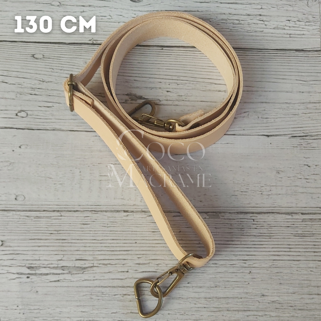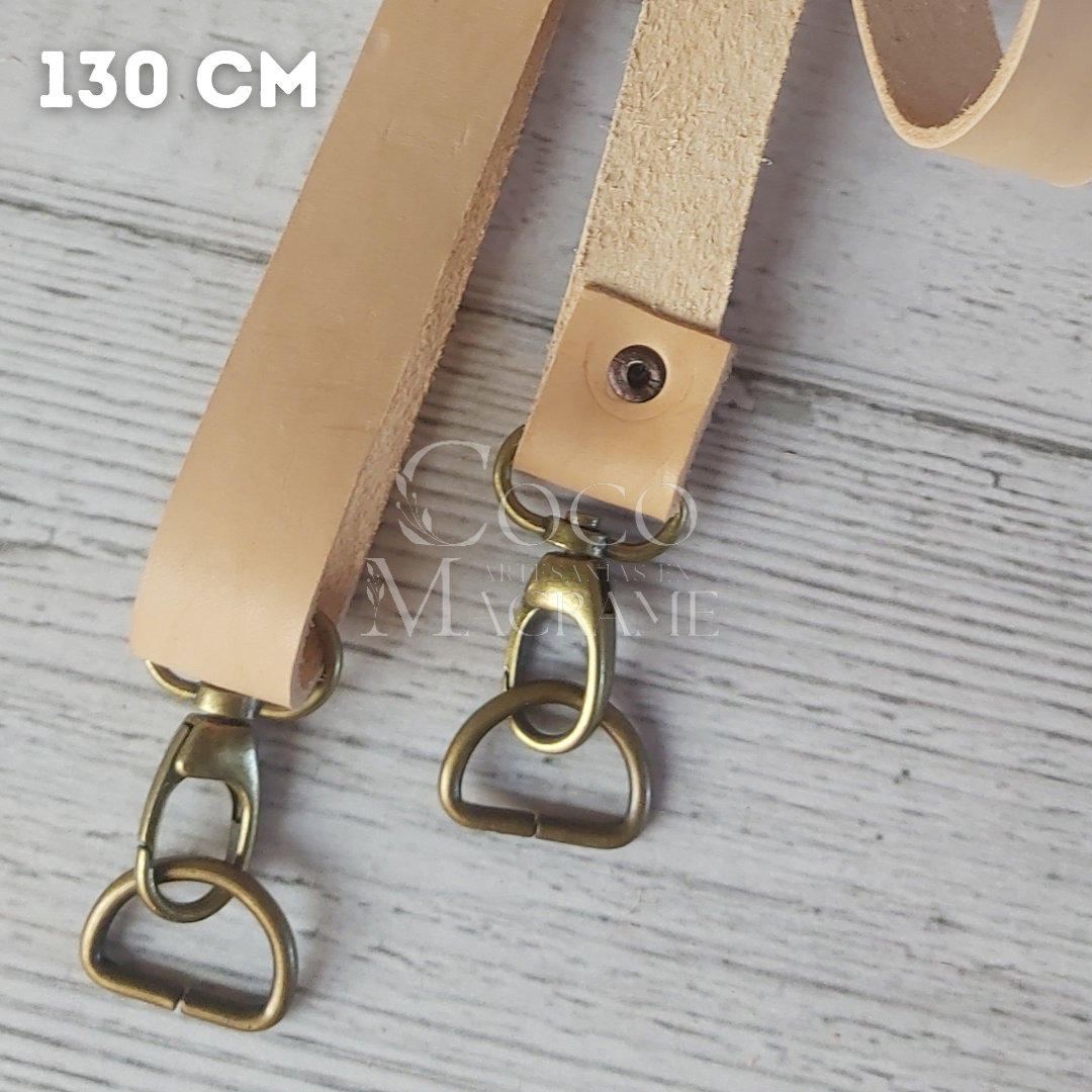 Correa de cuero para bolsos y carteras regulable con mosquetón y medialuna de bronce