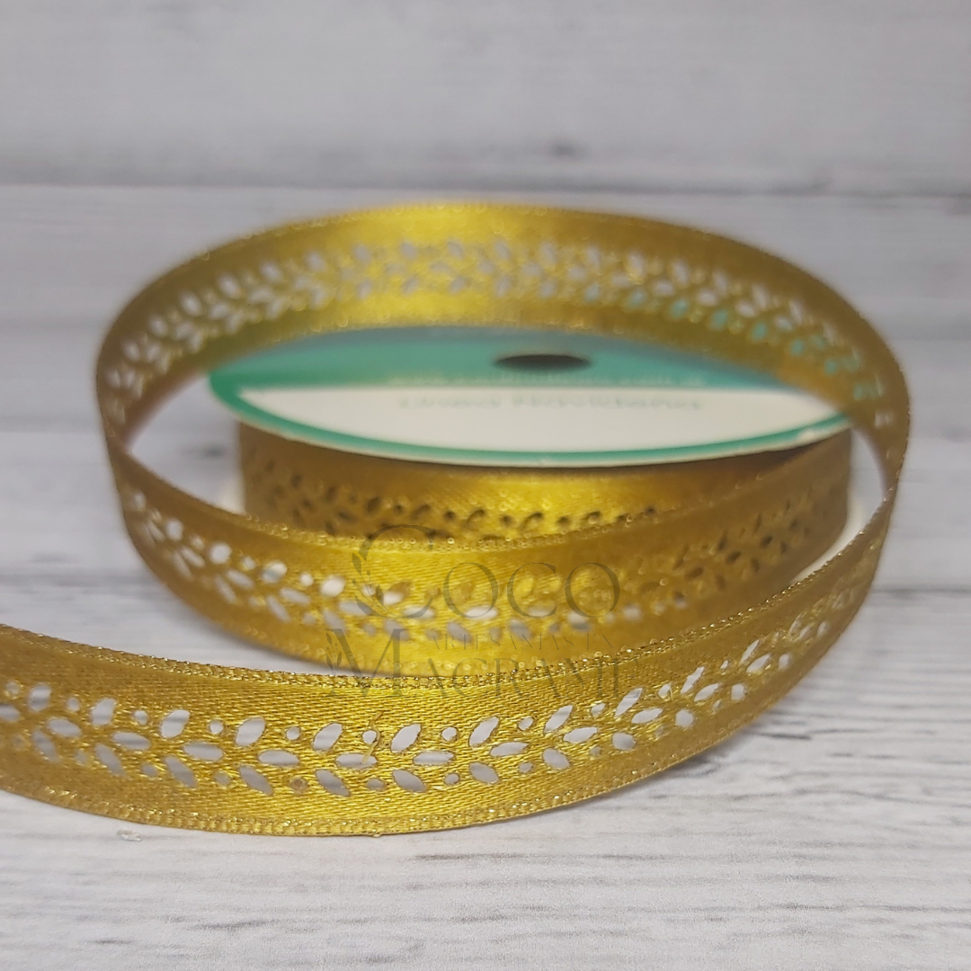 Cinta navideña trigal dorado 15mm x 10 mts