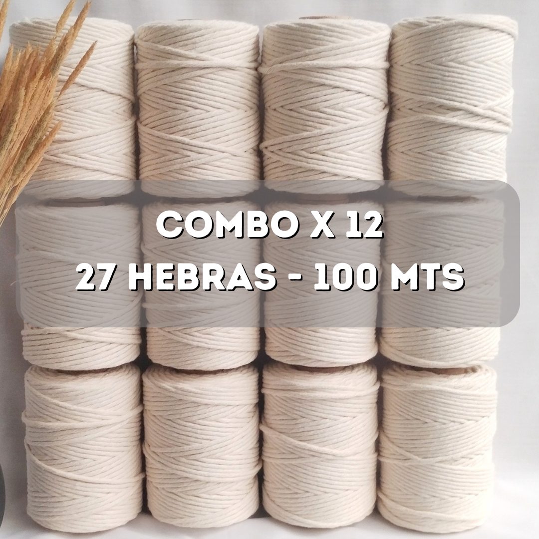 Combo x 12 unidades Hilo 100% algodón 27 hebras crudo