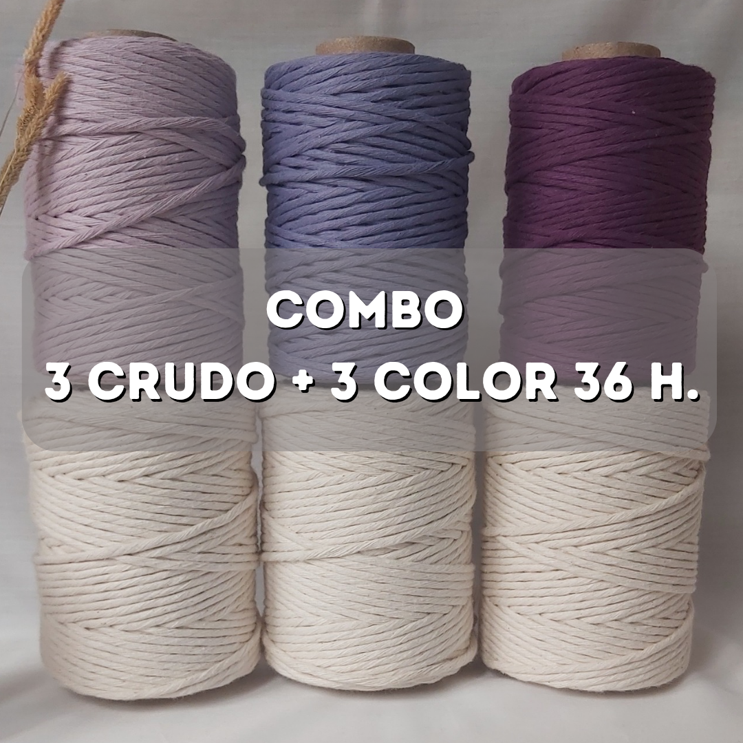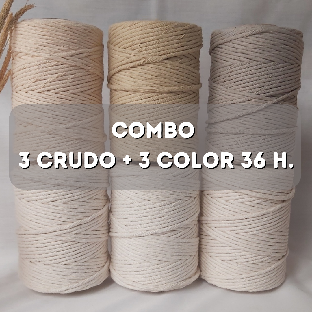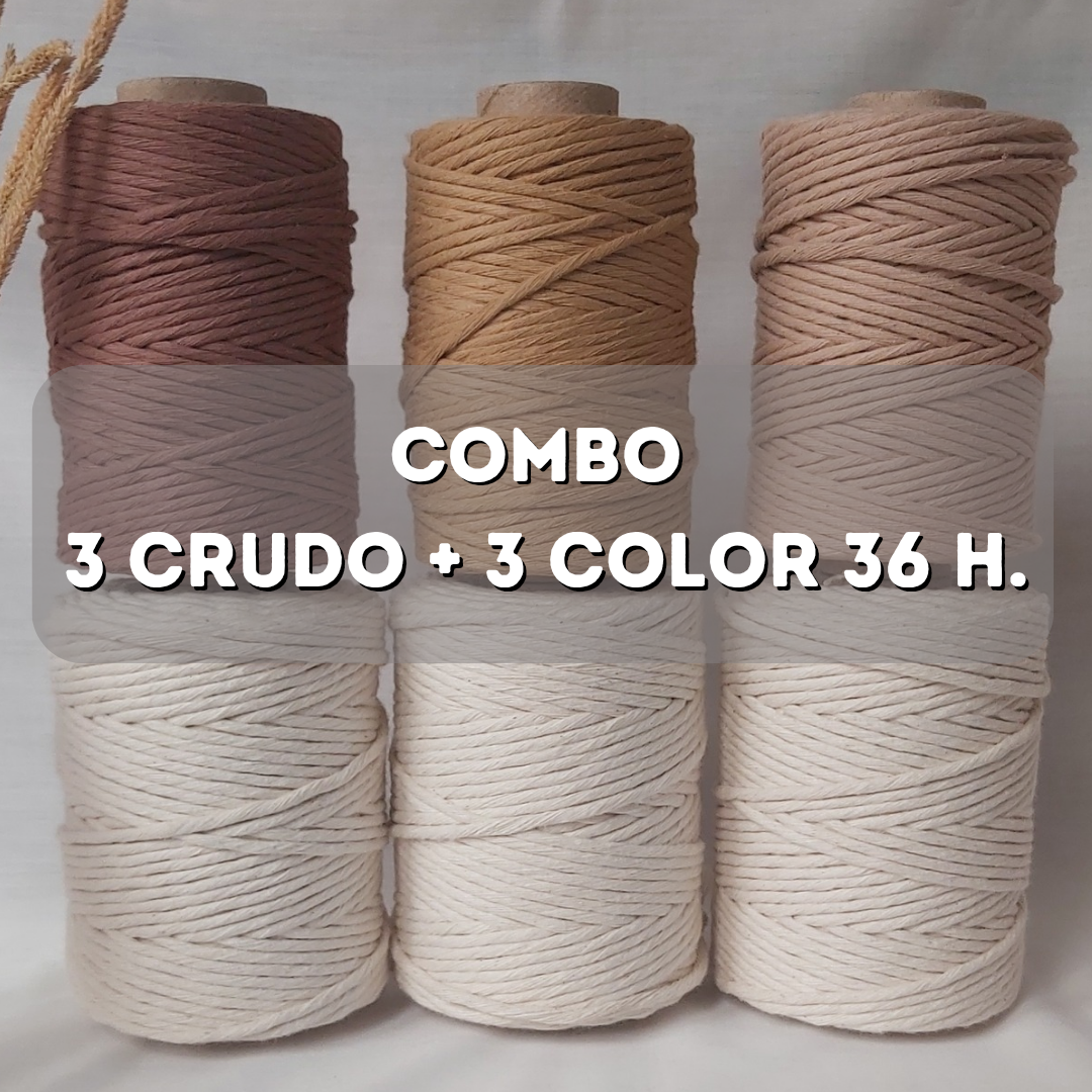 Combo x 6 unidades, 3 crudo 27 hebras + 3 color 36 hebras