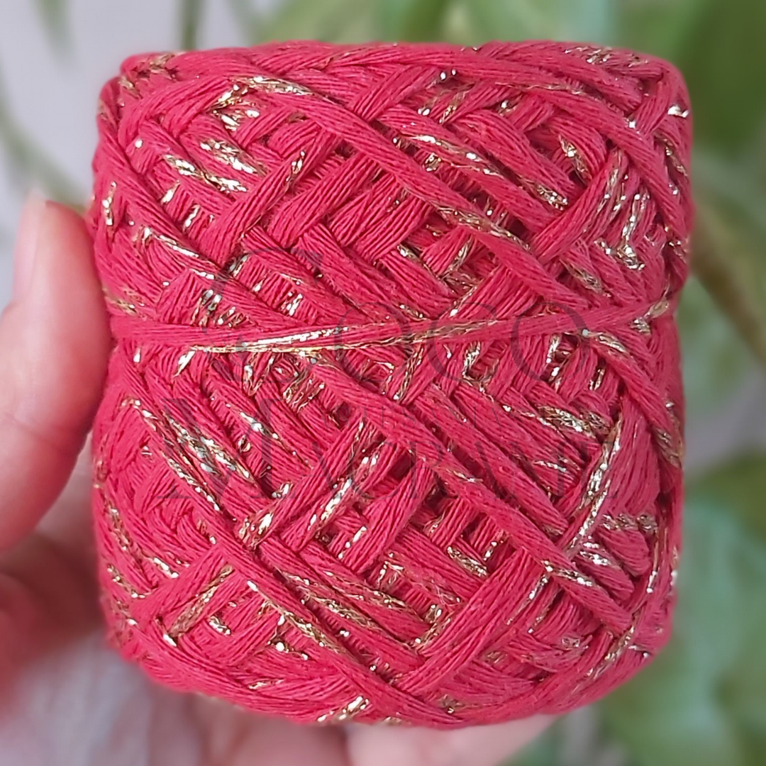Hilo 100 % algodón color rojo con lurex dorado